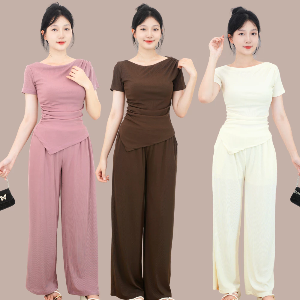 Set bộ nữ JIMA cổ thuyền tay ngắn dáng áo form rộng phối quần dài thun mịn